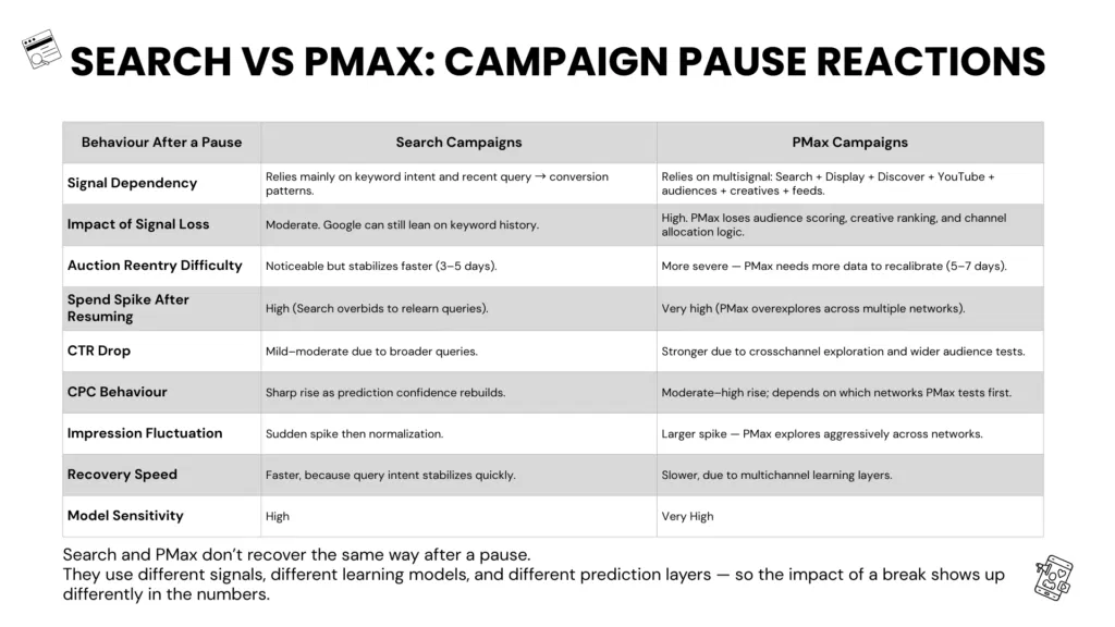Search vs PMax: How Each Reacts When a Campaign Pauses